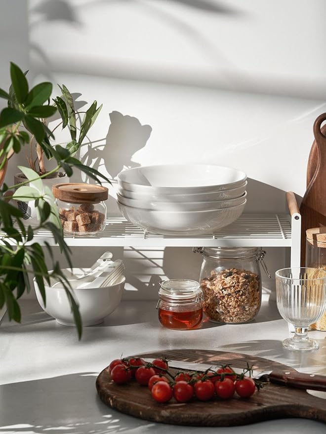 DOWAN 8.5" Pasta Bowls Set of 4, 30oz White Ceramic Shallow Dinner Bowls for Salad, Soup & Pasta, Stackable and Easy to Clean, Ideal for Everyday Use & Housewarming Gift(Soft White)
