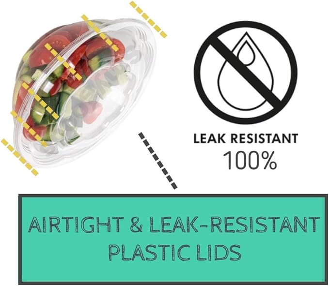 Smygoods Disposable Plastic Salad Bowls with Airtight Lids Ideal for Meal Prep, Takeout, Catering, Parties, Picnics, and Food Storage, Stackable, Leak-Proof