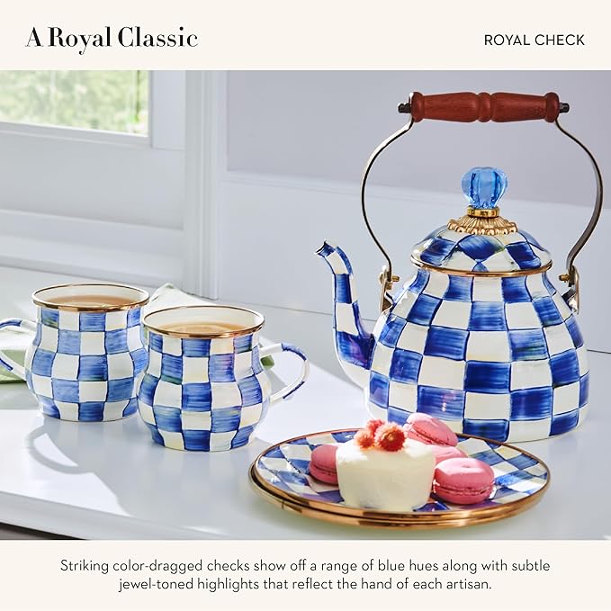 - ELEGANT SERVING ESSENTIAL: Our regal Royal Check Enamel Salad and Dessert Plate is great for lunch or a chic snack. This decorative plate features a glazed heavy-gauge steel underbody decorated with blue-and-white color-dragged checks.