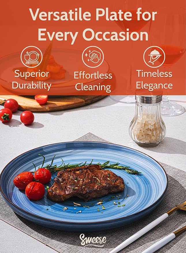 - Sturdy & Safe: Sweese plates are crafted from high-quality porcelain, proven to withstand the dishwasher, microwave, and oven. Our lead-free glazes ensure your safety, eliminating concerns about lead seeping into your system. Fired at high temperatures, this plate set won't absorb odors or harbor bacteria, ensuring a sturdy choice for your kitchen.