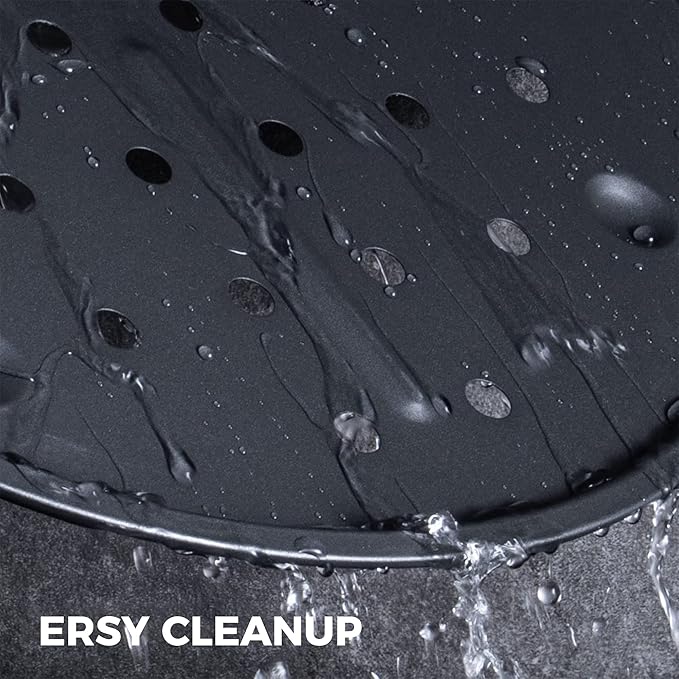 - PREMIUM EXTRA-THICK MATERIAL- With 27% thicker carbon steel, these durable pizza pans are constructed from heavy-gauge carbon steel for stability, even heat distribution, and durability for years to come. Warranty against peeling off with heat-resistance temperature: 450℉
