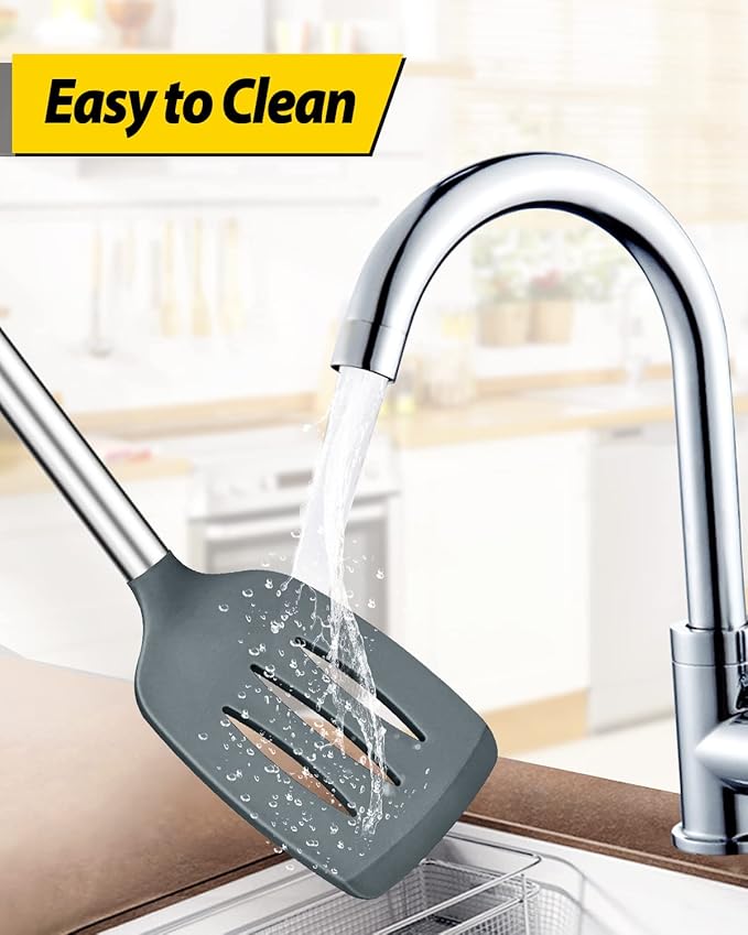- Widely Used : Thin and flexible edge of the silicone turner is ideal for flipping,frying and turning food; Large capacity design of cooking spoon, used to hold food more convenient; Slotted Spoon can quickly drain the water