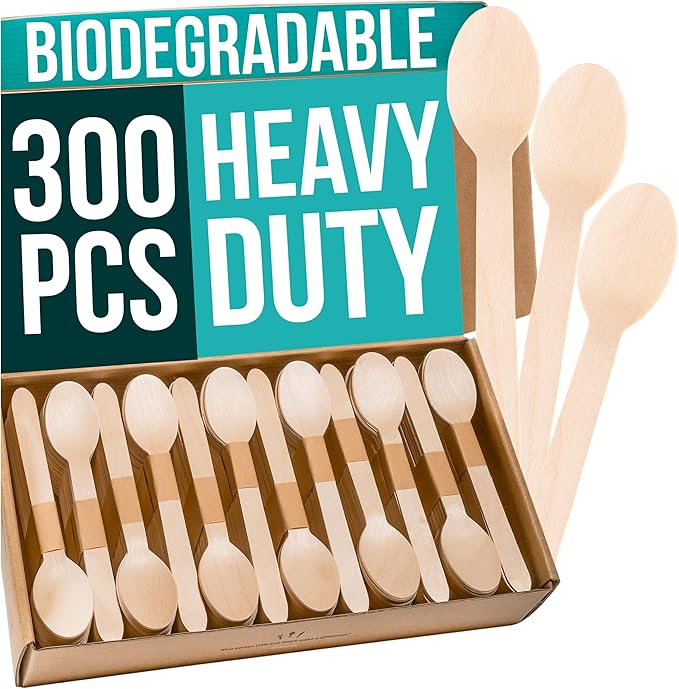 Disposable Wooden Spoons For Eating - 300pcs - Heavy Duty & Plastic Free - Our Guilt-Free FSC Certified Wood Protects Forests - A Great Alternative to Bamboo Spoons Disposable.