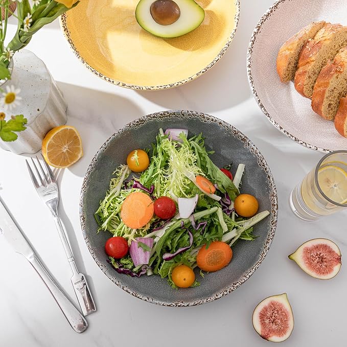 - Versatile Use: This Rustic pasta bowl is Lightweight and durable, it's suitable for salad, pasta, noodles, beans, rice, popcorn, pie and ice cream, not only as individual bowl use for daily family and large enough to sharing food during indoors and outdoors parties