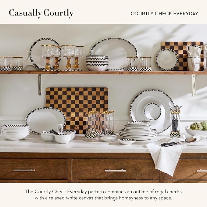 - ENTERTAINING ESSENTIALS: Elevate meals with the Courtly Check Everyday Small Plates, which are decorated with hand-applied black-and-white Courtly Check transfers. This small plate set lets you add MacKenzie-Childs flair to even the most casual meals.