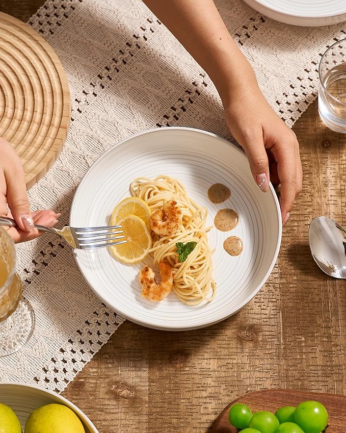 - PASTA BOWL SET OF 4 - Ideal size 8.5’’ Dia, practical depth 1.6’’ H, It holds contents both solid & liquid with ease- great for pasta, soup, dessert, ice cream, rice, beans and so on