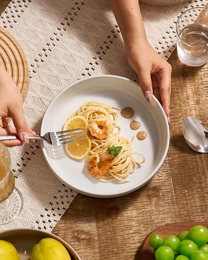 - 【FUN SPECKLED DESIGN】These pasta bowl feature a minimalist & fashion design. Spruce up meal time with these large bowls that feature a black speckled pattern, making each piece unique