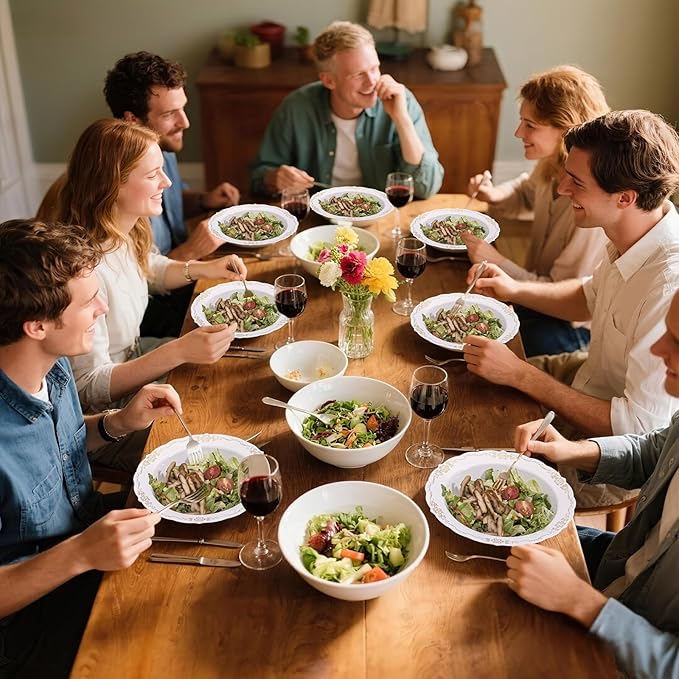 - PERFECT SIZE - This set includes 30 plastic cereal bowls with a capacity of 12 ounces each—ideal for serving salads, hot soups, candies, desserts, yogurt parfaits, fruits, ice cream, cakes, breakfast cereals, and more. Please refrain from placing these heavy-duty plastic bowls in microwaves or dishwashers.