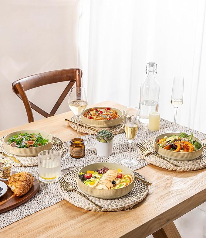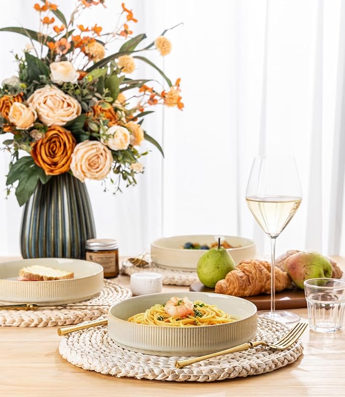 - STACKABLE & EASY TO CLEAN: Our pasta bowls are designed to be stackable, making them perfect for space-saving storage in your kitchen cabinets or pantry. The smooth glaze finish makes them easy to clean—simply rinsewith soap and hot water, or place them in the dishwasher for effortless cleanup.