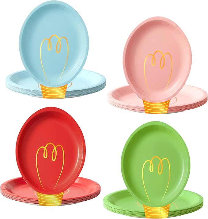 - Unique Christmas-Themed Design: The Christmas plates feature a unique light bulb shaped design, adorned with gold foil on the paper plates, have 4 colors: red, green, blue and pink, well-printed and fade-resistant. Instantly ignite the party mood with the beautiful and festive Christmas plates dinnerware