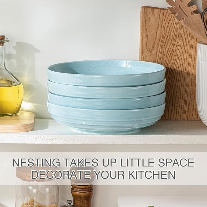 - Stackable & dishwasher-safe: made of durable stoneware, These Pasta bowls are stackable and dishwasher, microwave, freezer safe! You also can wash them with dish soap and hot water easily, and humanized design make it take up a little space in your cabinet.