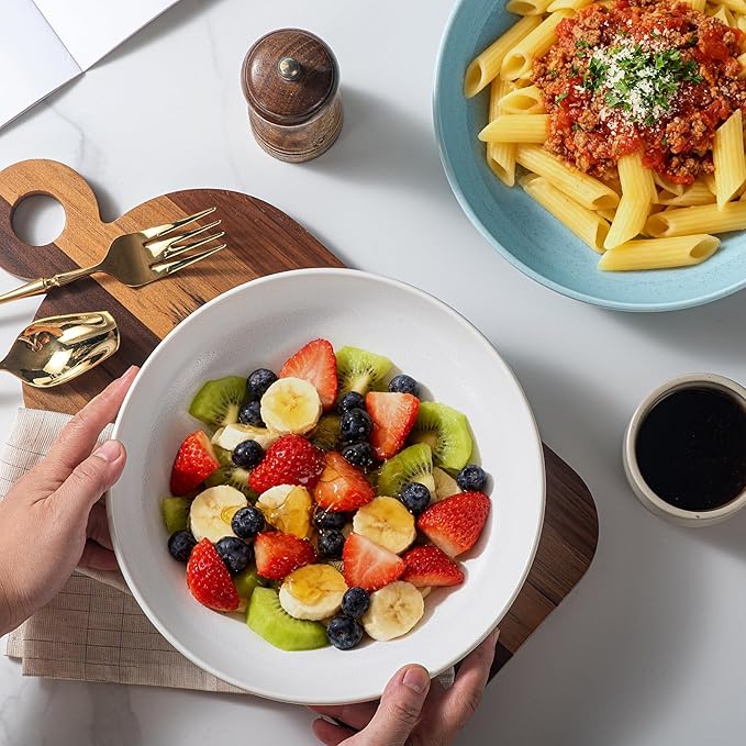- Stackable & dishwasher-safe: made of durable stoneware, These Pasta bowls are stackable and dishwasher, microwave, freezer safe! You also can wash them with dish soap and hot water easily, and humanized design make it take up a little space in your cabinet.